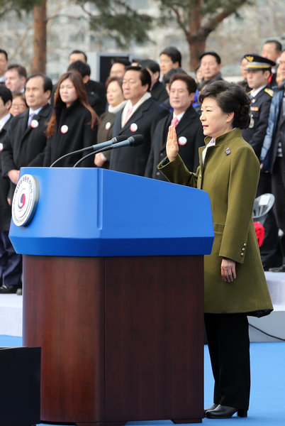 朴槿惠正式宣誓就职韩国总统 鸟叔助阵(1)