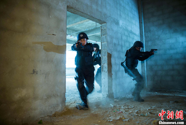 实拍特警“巷战”反恐演练(1)(6)