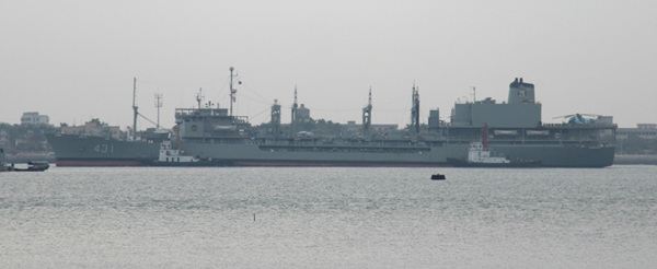 网友在湛江港附近拍摄到的伊朗“哈尔克”号直升机运输舰