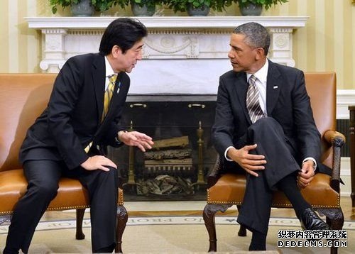 日本首相安倍晋三的访美之旅并非在钓鱼岛问题上毫无“斩获”?资料图:安倍晋三22日在白宫与奥巴马会晤,双方仅开放了一小段时间给媒体