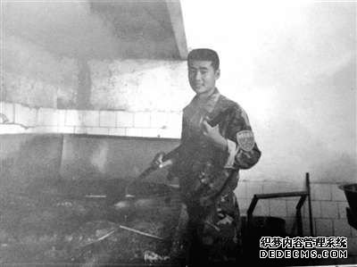 瞧,这张照片是我2002年新兵下连刚到炊事班时拍的。那时候,我们炊事班一共6个人,班长给我安排了烧火煮饭的任务。一开始,我还认为这是很简单的事,后来才知道,煮饭真是个技术活:火烧旺了,米饭很快就煳了底儿,要是火候不够,时间一长,又会做成夹生饭。