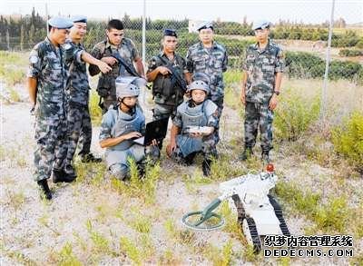 外国维和军人对我扫雷机器人兴趣浓厚。钱宗阳摄