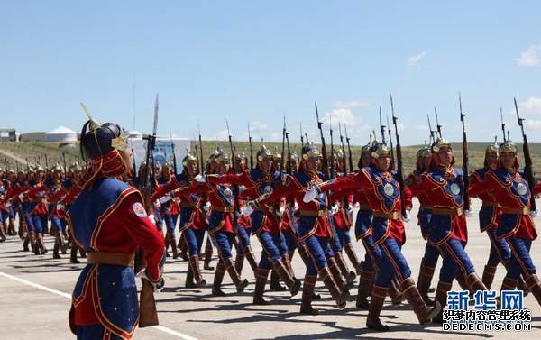 资料图:2011年7月31日,在蒙古首都乌兰巴托,蒙古国仪仗队列队前进,接受检阅。新华社记者黄龙杰摄。