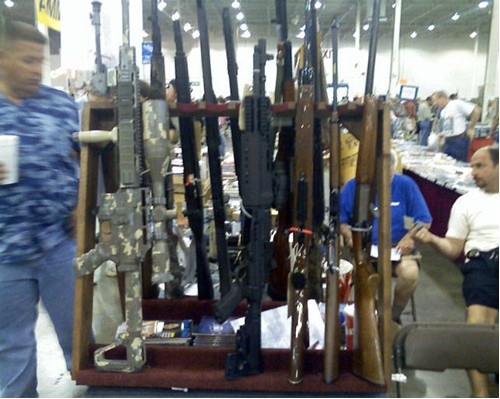 报告显示:在美国,制造和销售枪支弹药及其必需品的企业是这个国家经济的重要组成部分。正是它们在美国面临金融危机考验之时,依然为美国人民提供了大量的高薪工作机会。与此同时,它们为美国各州及联邦政府缴纳了占据重要份额的税收。在门口交了10美元门票, 进了展厅, 马上感觉一阵眩晕. 到处是枪!