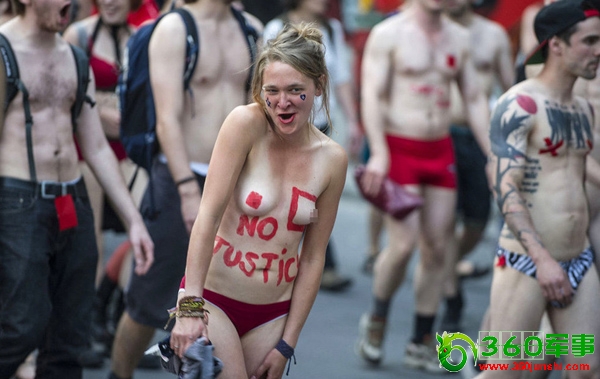 6月7日,加拿大蒙特利尔,赤裸的学生大游行,抗议学费上涨。