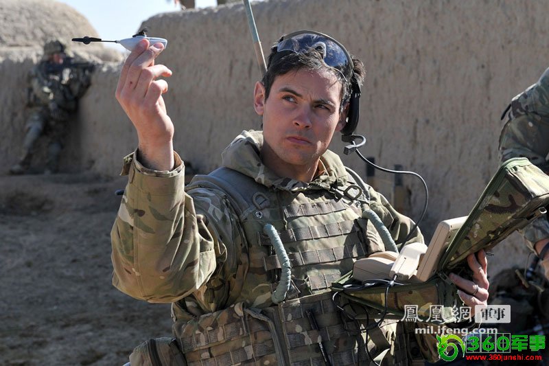 驻阿富汗英军士兵使用“黑色大黄蜂”微型无人机。